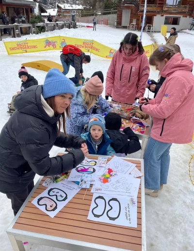 Alongside the snowboarding sessions, kids can also enjoy creative and artistic activities hosted by Petit Verbier, making it a joyful afternoon both on and off the snow.